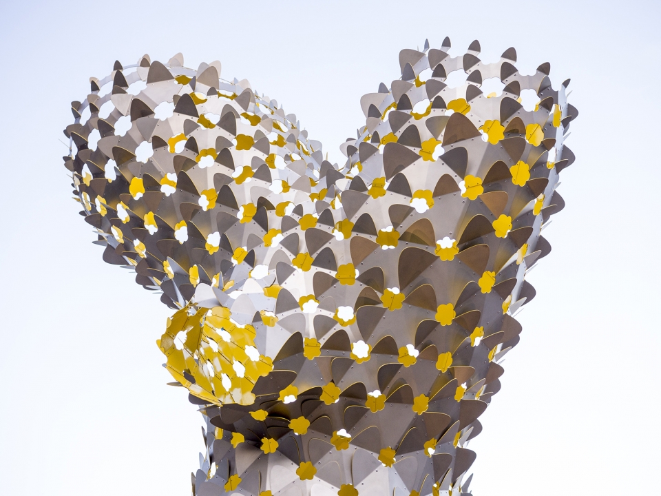 “‘蝴蝶’是一个有着丰富内涵的作品,它既是对自由的赞美和叹惋,又是一场感官的狂欢,同时也是对Joseph Albers、点彩画派、欧普艺术、波普艺术、动态艺术以及抽象艺术的致敬。它可以被看作是一面旗帜,一个靶心,一块标记,亦或如其字面所示,是一只舞动的蝴蝶。”