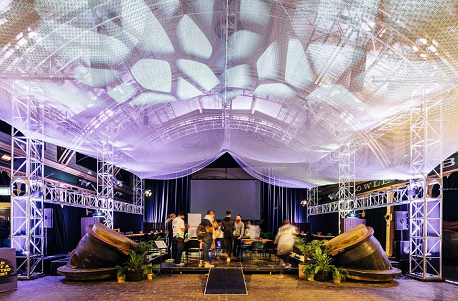 Grimshaw公司把墨尔本北部的肉类市场变成了一个巨大的装置,它包裹着墨尔本知识周的活动中心。墨尔本知识周是墨尔本一年一度的节日,旨在探索澳大利亚发展最快的城市的智慧和创新的未来。装置由大约一平方公里的水果编织网组成,设计者控制其拉伸结构来提供一种由运动和光组成的氛围体验。装置包裹着墨尔本知识周的各种活动和热烈的讨论。