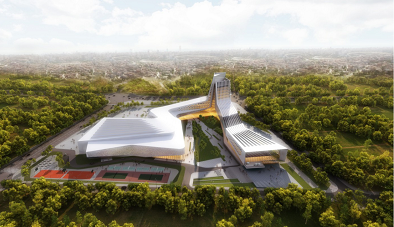 项目位于镇江南 徐新城,包括28900座的体育场 、6400个坐席和470个展位的体育会展 馆、1000座游泳跳水综合训练馆、体育学校和附属设施。工程以五大策略创造生态绿色的现代体育中心。