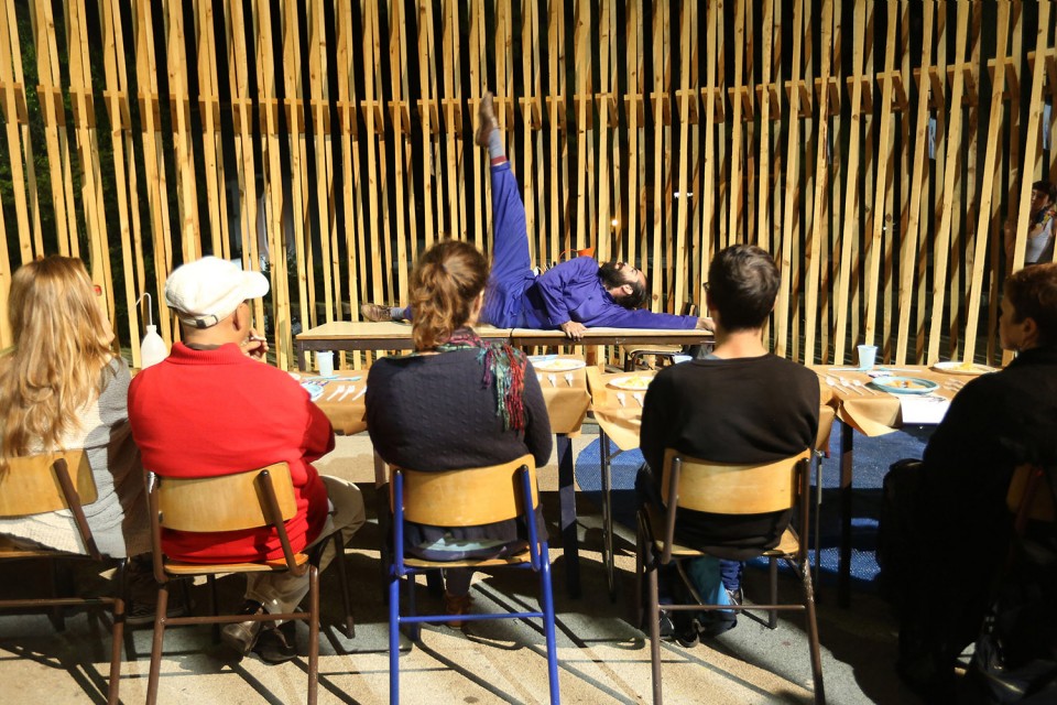 Povera Pavilion 是为Almada歌剧节庆祝蓝色剧院(Teatro Municipal Joaquim Benite, 由Manuel Graça Dias与Egas José Vieira设计)10周年而搭建的。这座椭圆形的建筑,使用的材料是粗加工的松木条,设计师通过展示原始的质感为设计增色。通常在剧院中支撑舞台布景的三角形构件,经过设计,作为一种全新的元素构成了整座建筑。一根柱体